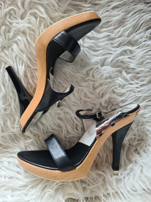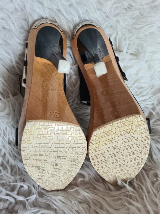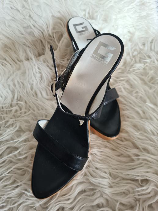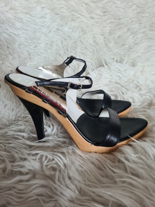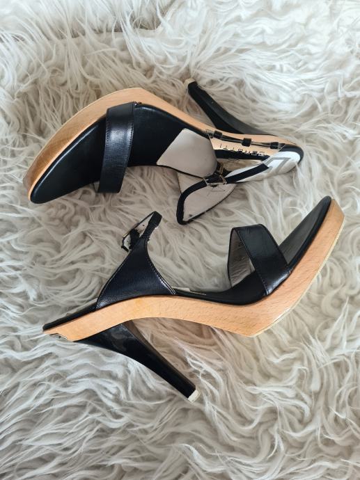 KAO NOVE CERUTTI kožne natikače na petu, prekrasne crne boje. Visina pete 12.5cm.