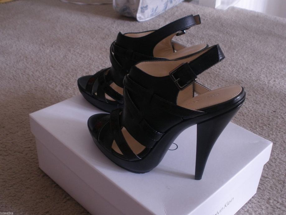 Calvin Klein ekskluzivne crne kožne sandale, platforme, vrlo sexy, s detaljem - remenčićima uzorka zmijske kože, broj 40, nove (s originalnom kutijom).
