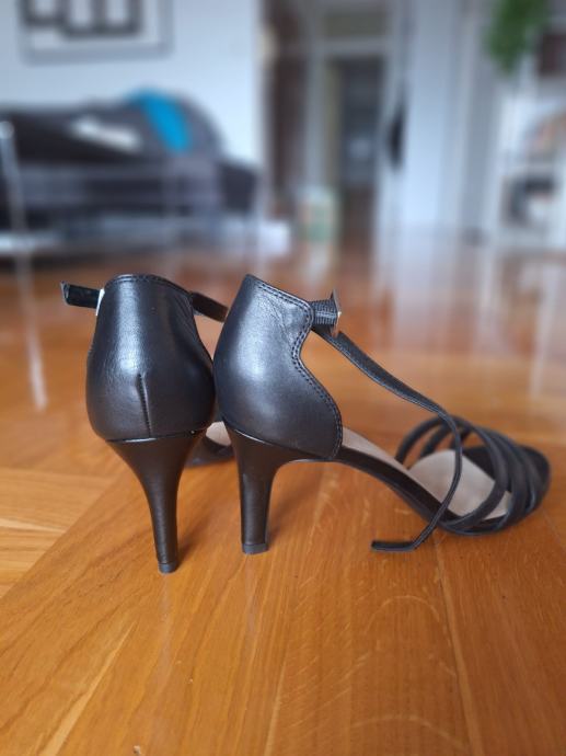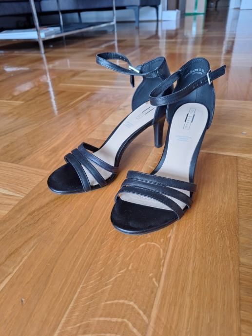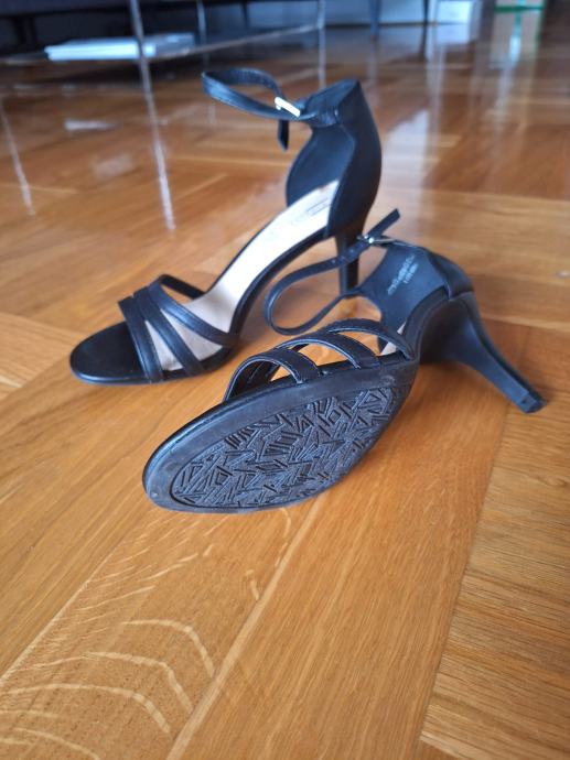 Vrlo malo nošene sandale na visoku petu s remenom oko gležnja i remenčićima preko prstiju.