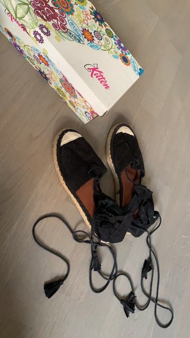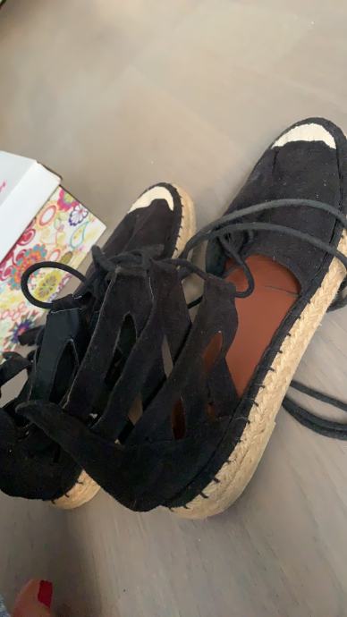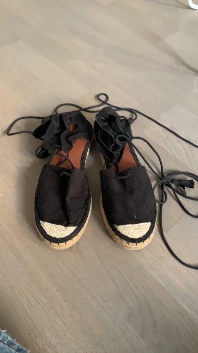 Crne espadrile na vezanje oko gleznja. Malo nosene, broj 38. Ne saljem, moguca primopredaja u Zagrebu. :)