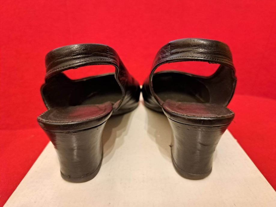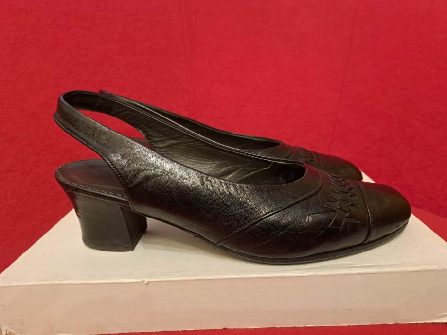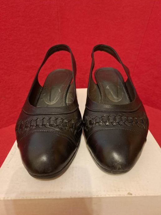 Crne kožne sandale (prava koža) broj 40, 26cm, 5cm peta, udobne, mali tragovi nošenja prikazano na slici
