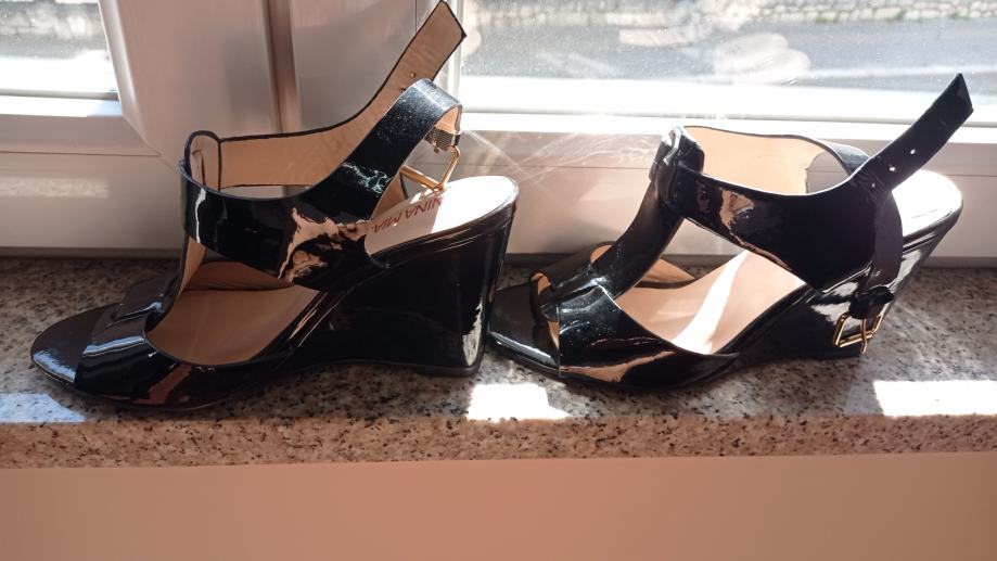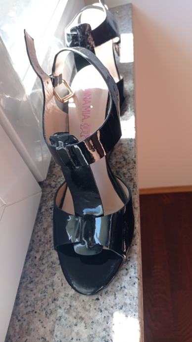 Prodajem crne sandale, kombinacija kože i laka, broj 40, puna peta, stabilne. Nošene jednom, skoro kao nove. Povoljno prodajem radi količine stvari.