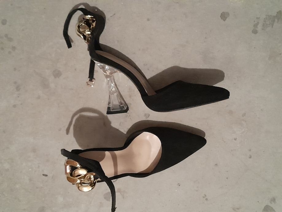 **PRODAJU SE ELEGANTNE CRNE SANDALE SA ZLATNIM DETALJIMA**