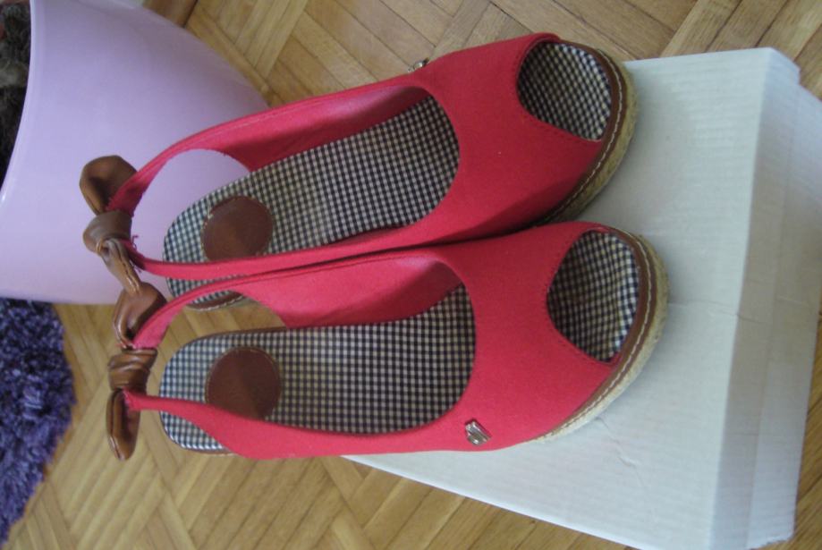 Prodajem predivne crvene platnene sandale, nošene svega par puta (previsoka mi peta), očuvane i bez oštećenja, vel. 36, visina pete je 8 cm, 10 eura + PT ili primopredaja u Velikoj Gorici iza 17 sati ili Supernova Buzin vikendom.