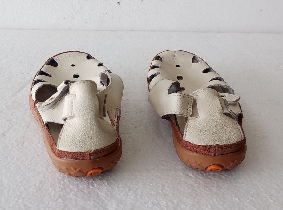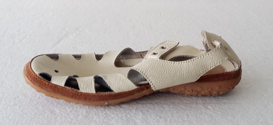 ELLA ravne sandale deklarirane veličine 37 (unutrašnje gazište 24 cm). Boja krem/ bež. Gornjište i iznutra izrađeno od prirodne kože. Džonovi ravni, gumeni. Nošene su par puta, ko nove.