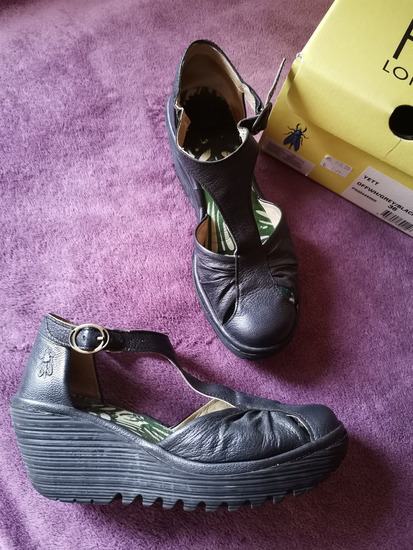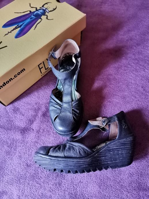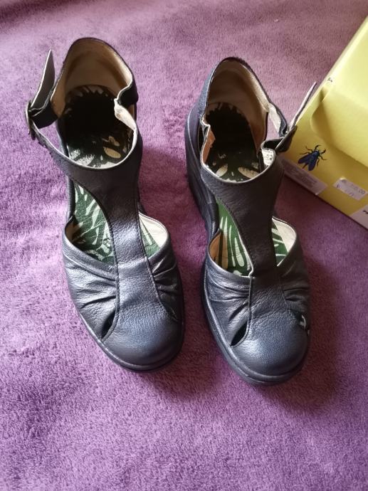Fly London tamnosive kožne sandale na punu petu, par puta nošene, očuvane.