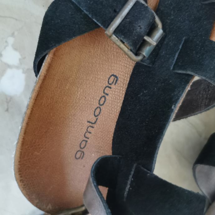 Predivne lađa sandale s kožnatim remenjem, (brušena koža) s kopčanjem oko gležnja.