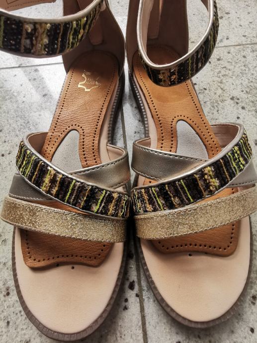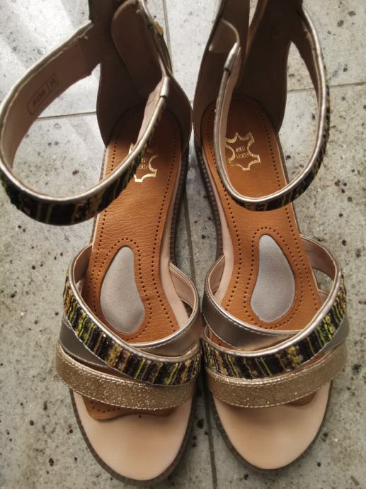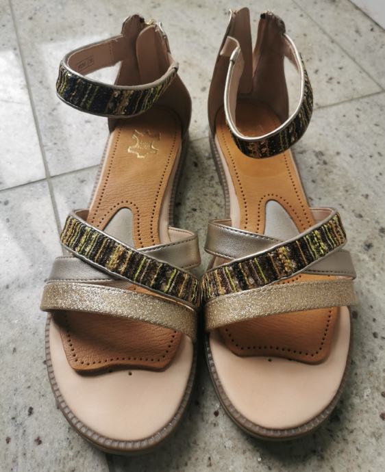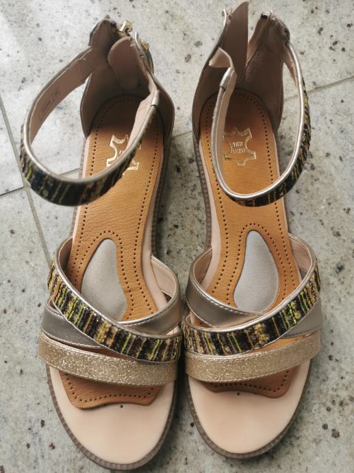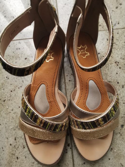 Potpuno nove sandale koje sam naručila online i zaboravila vratiti u roku. Veličina 38, duljina tabanice 24,5 cm, meni treba 25 cm... Koža, primopredaja Zagreb zapadni dio grada ili Trešnjevka ali šaljem i poštom ili Tiskom.