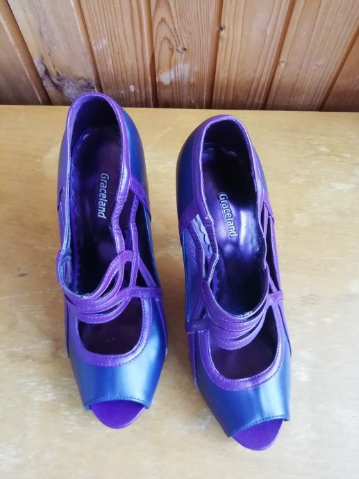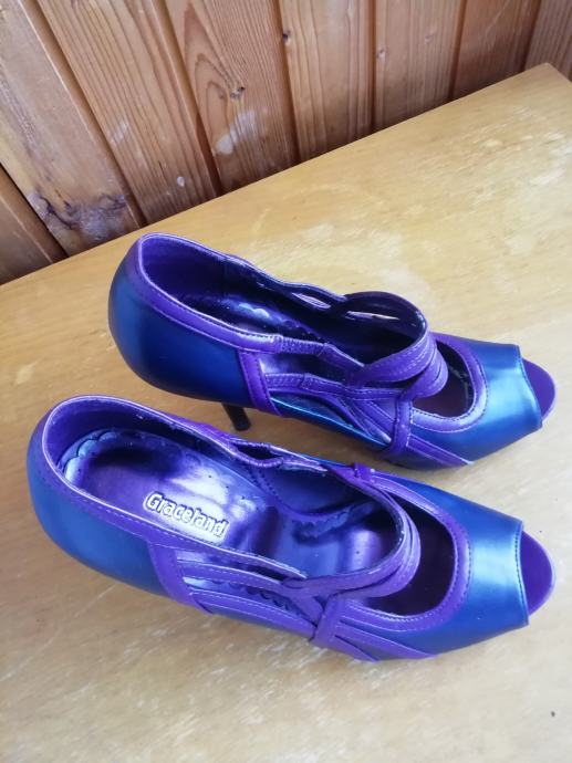Sandale su nošene par puta, očuvane, crno ljubičasta kombinacija, na visoku petu.