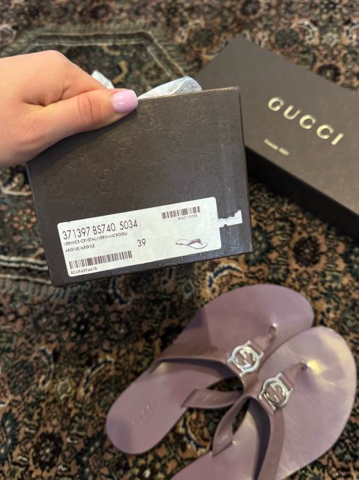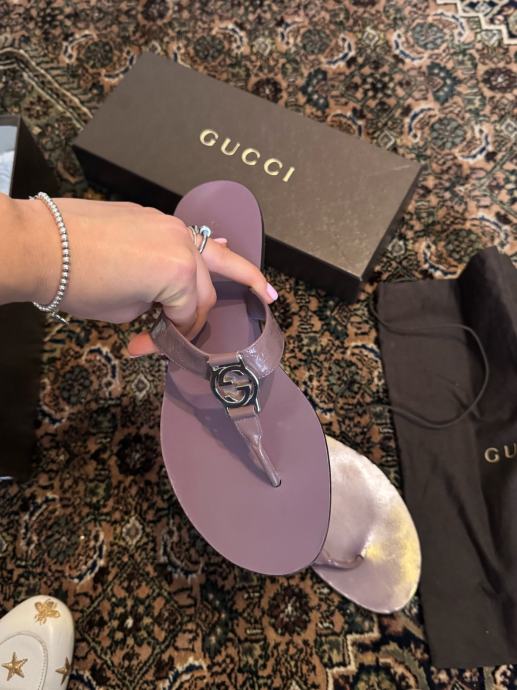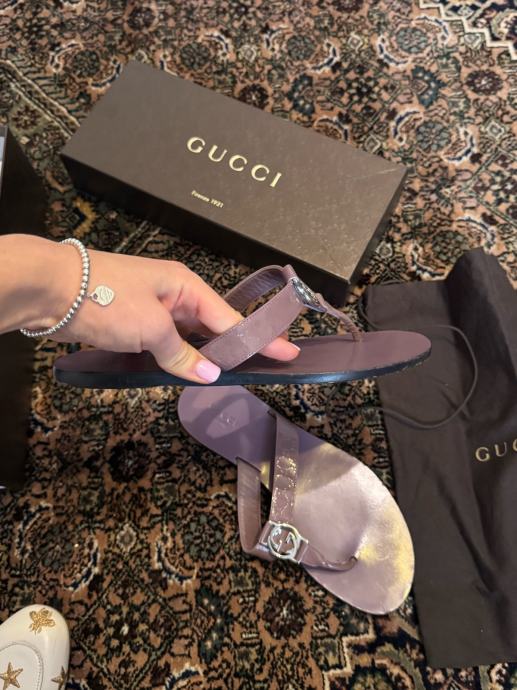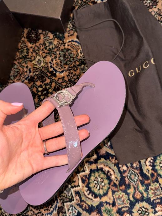 Vintage japanke/sandale, samo na potplatu trag nosenja. Monogram detalji na lakiranoj kozi. Prekrasna ljubicasta boja. S kutijom i dustbagom