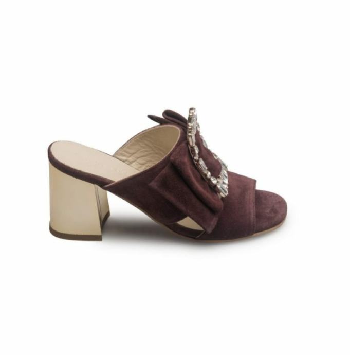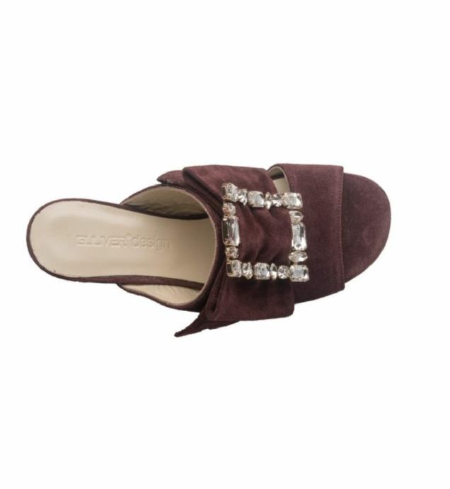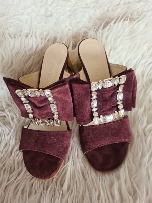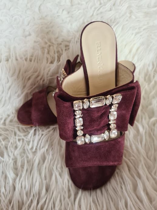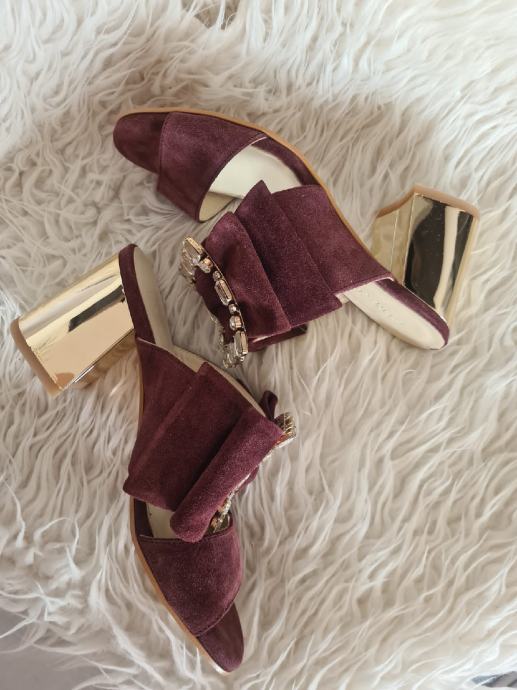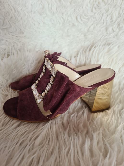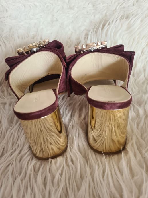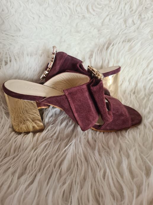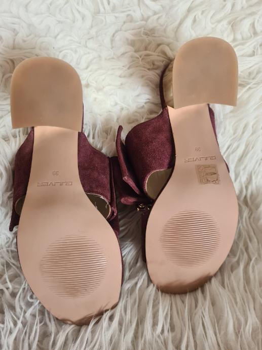 Prekrasne nove kožne Guliver natikače, visina pete 8cm, broj 39, bordo boje.