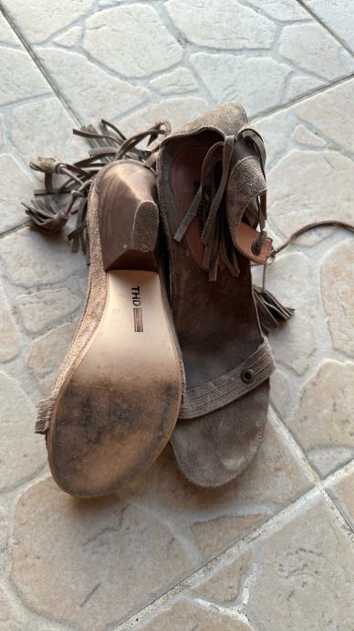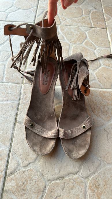 Hilfinger denim kožne sandale 40, siva brušena koža, malo nošene