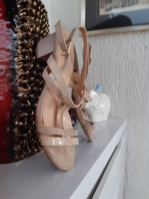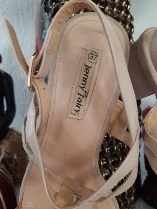 JENNY FAIRY bez sandale s remencicima, kombinacija sa lak kozom i zlatnim detaljima, peta: 4 cm, duzina gazista: 24 cm.