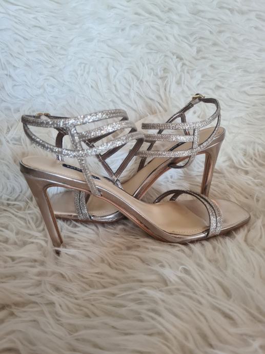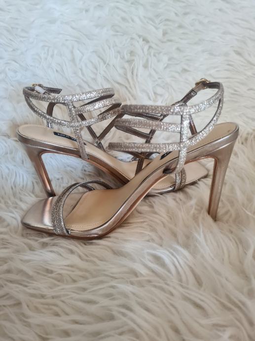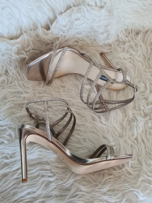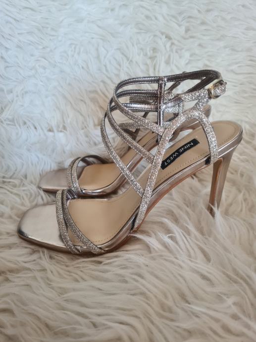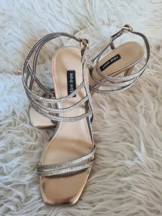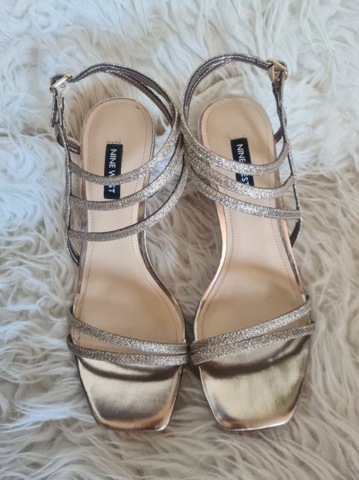Kao nove Nine West sandale, prekrasne zlatne boje, visina pete 10.5cm, broj 37.5. Remencic oko gleznja.