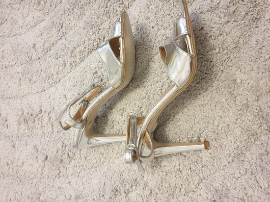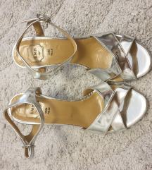 Moderne srebrne lakirane sandale/štikle, nove, idealne za izlaske ili za svadbu, potpetica 10 cm