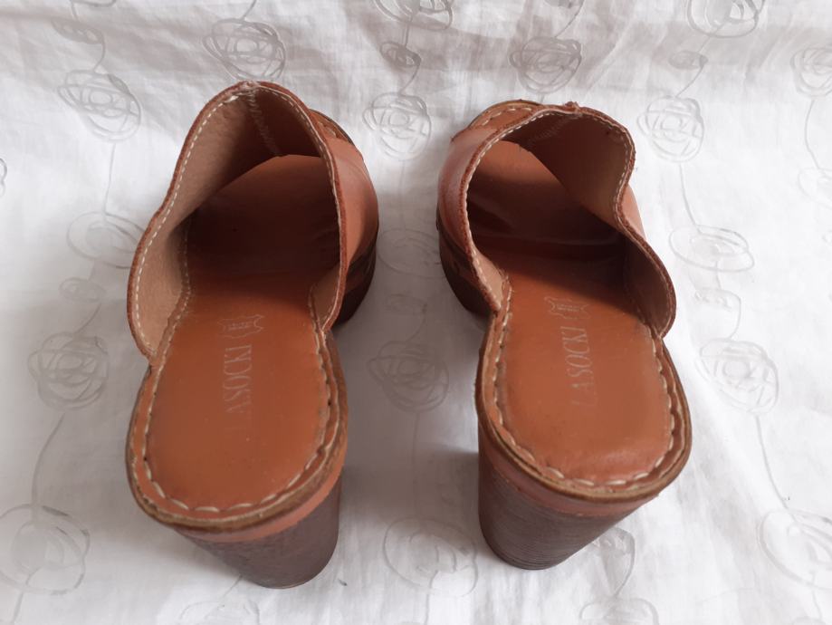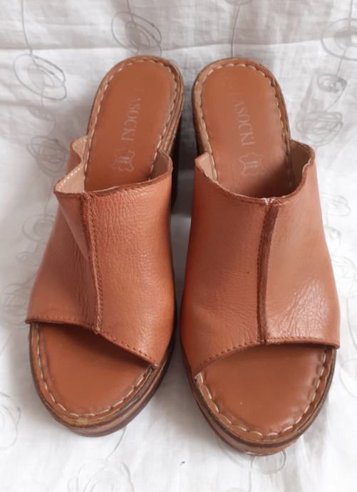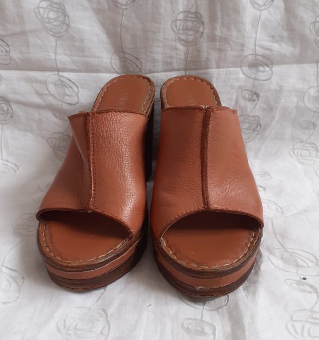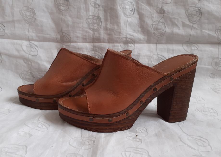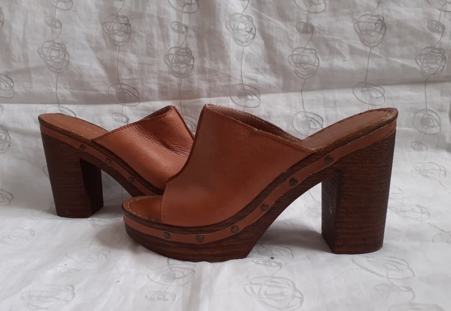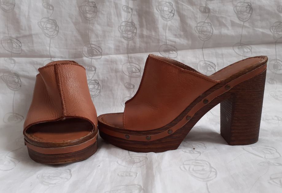 Prava koža, unutra isto prava koža. Platforma izgleda kao drvo ali poliuretan je to.