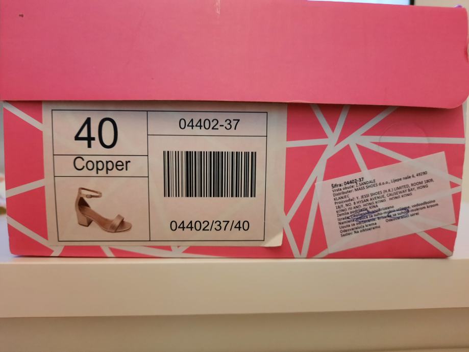Potpuno nove sandale, br. 40, visina pete cca 5 cm, u cijenu je uključena poštarina.