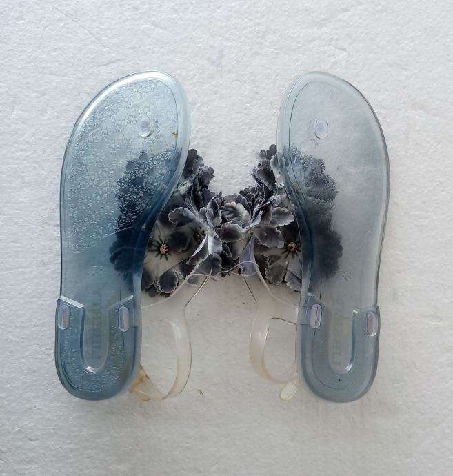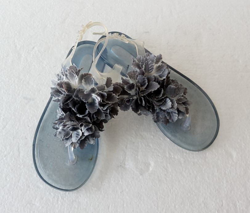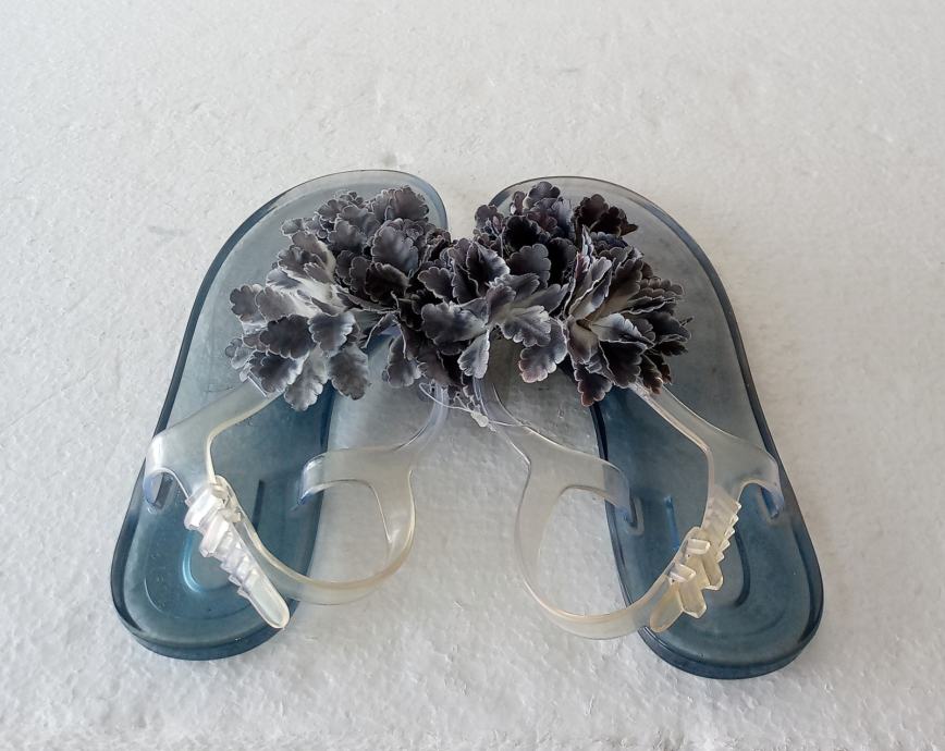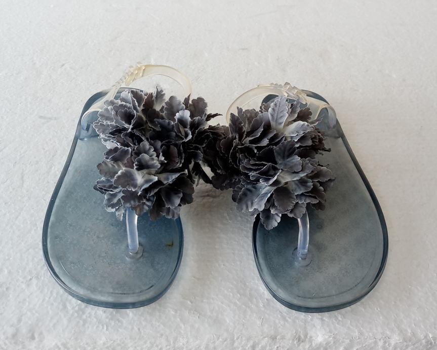LIBERTY sandale/japanke od prozirne kombinacije gume i plastike sa umjetnim ukrasnim cvijetom u plavim tonovima. Deklarirana veličina 36, a unutarnje gazište 23 cm. Imaju na petom dijelu malo pojačanje (vidljivo na fotki potplata). Potpuno NOVE, još imaju plastične vezice. Za hodanje po suhom i za vodu.