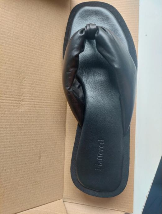 Prodaju se crne kožne japanke marke Flattered, veličine 39.