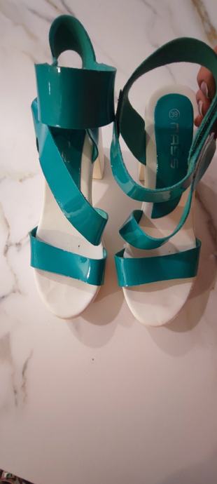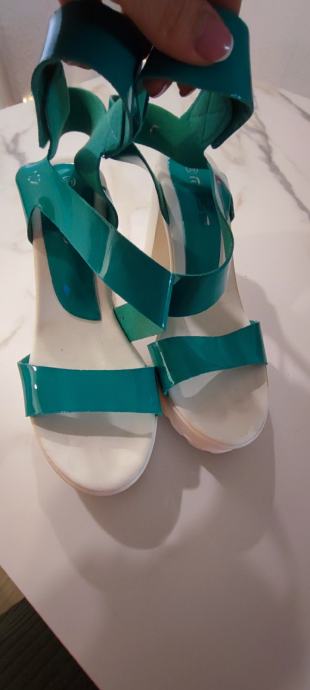 Prodajem Mass tirkiz zelene sandale veličina 39, nošene dvaput, zatvaranje na čičak oko gležnja. Manji tragovi nošenja vidljivi.