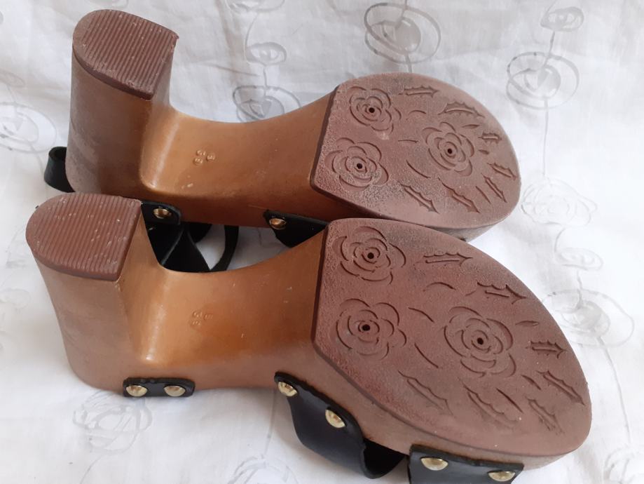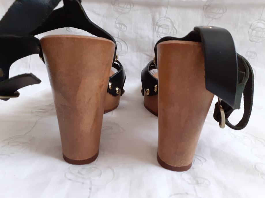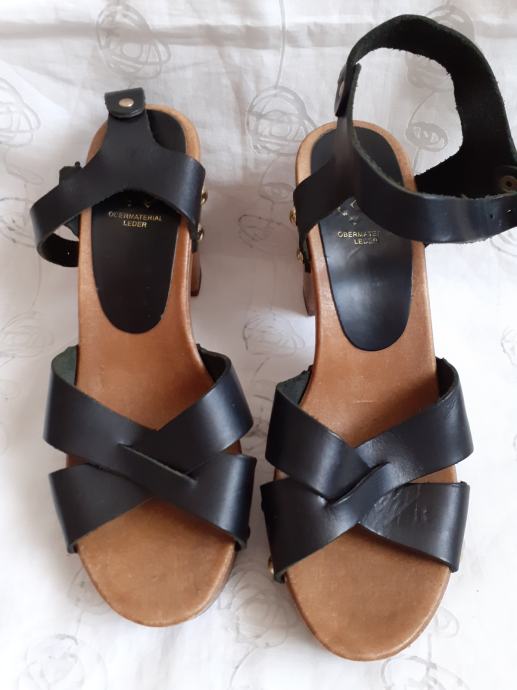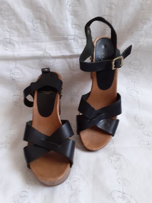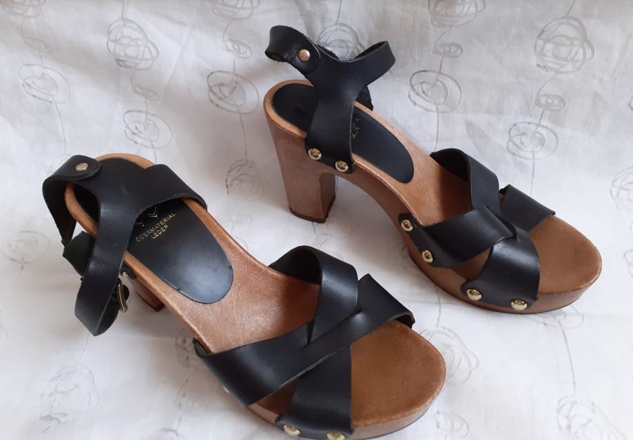 Prava koža. Platforma izgleda kao drvo ali neki umjetni materijal.