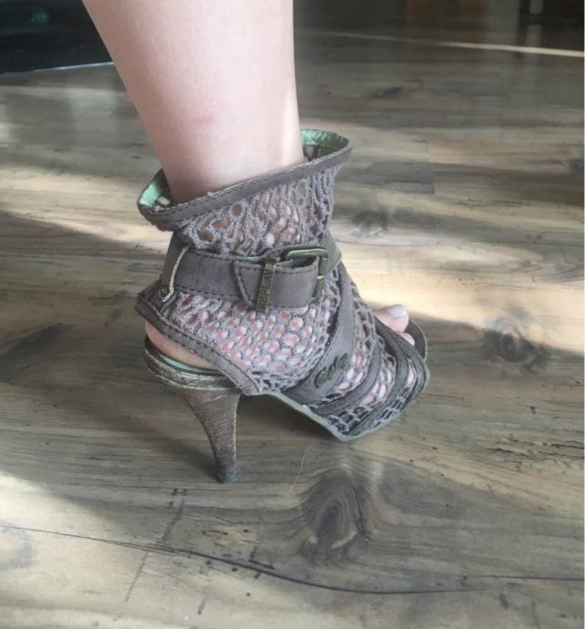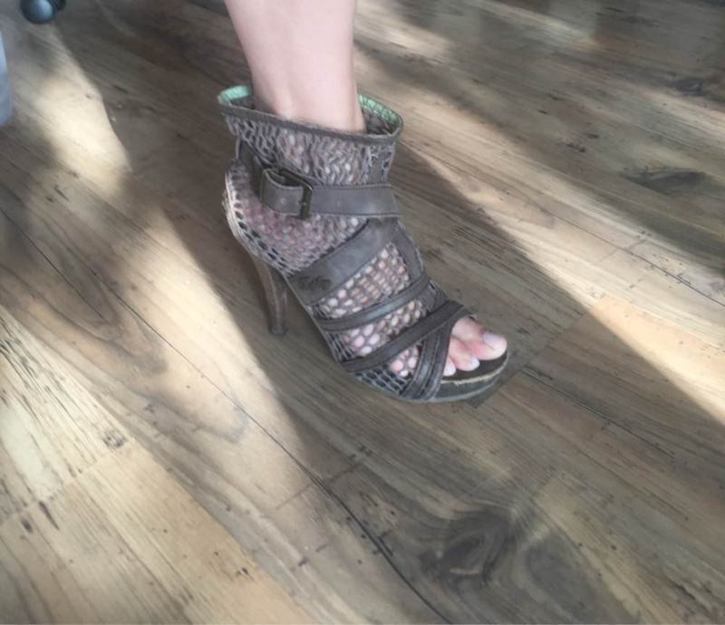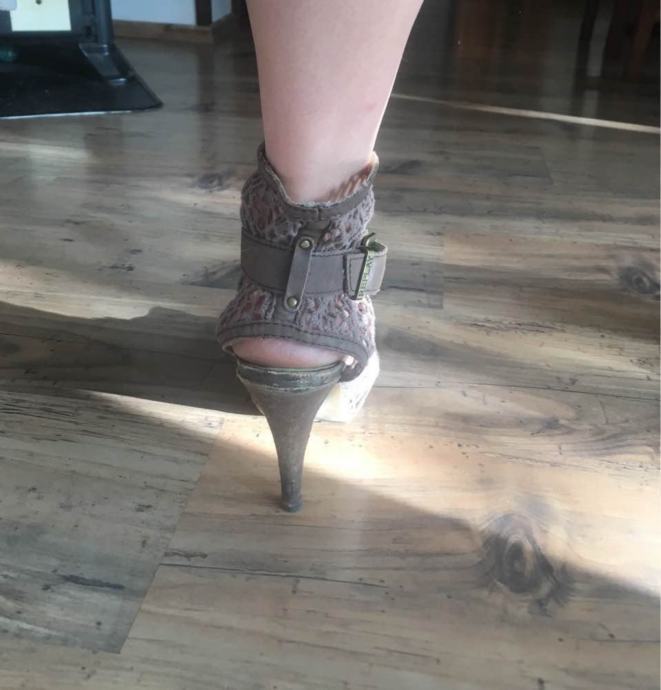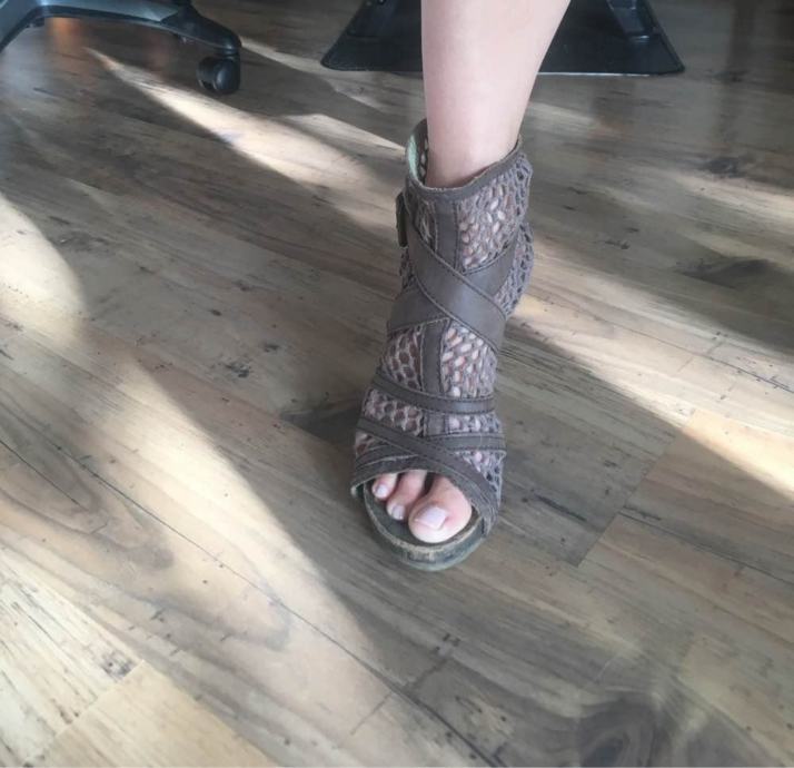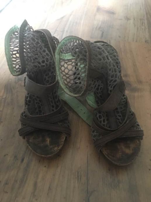 Efektne i posebne. Mrežasti detalji, kožni remeni i metalna kopča sa strane. Visina pete cca 10 cm.