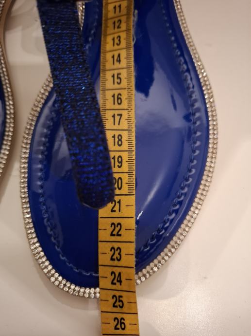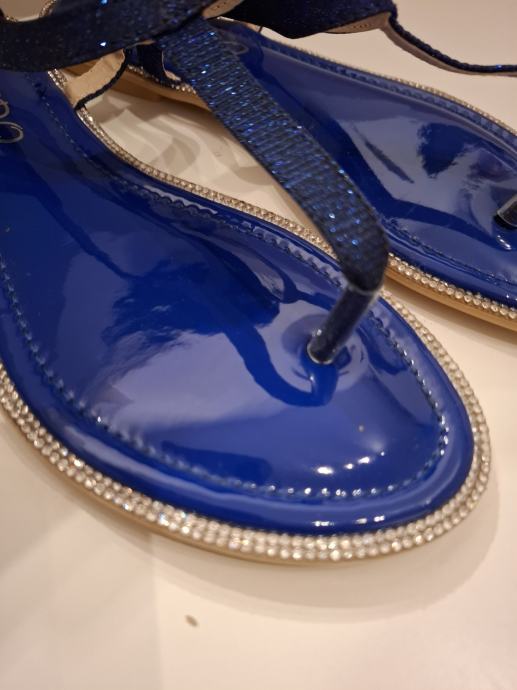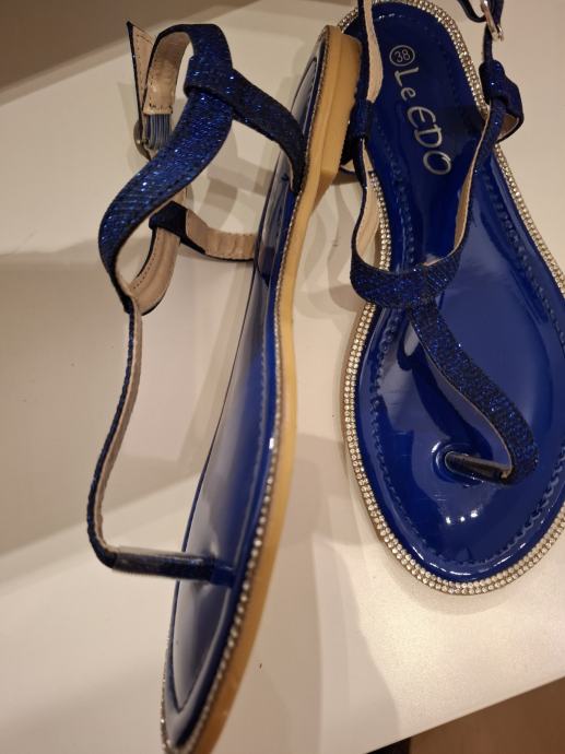 Prodajem nove sandale/japanke, tamno plave boje sa cirkonima. Veličina je 38, gazište je 24 cm. Marka Le EDO. Potplat je od gume tako da nizu skliske. Udobne su i lagano ih je nositi.