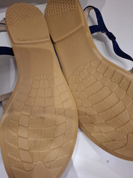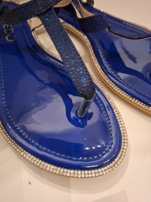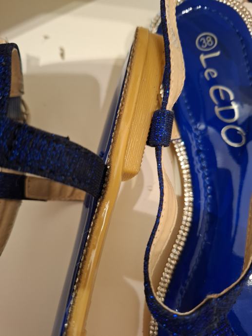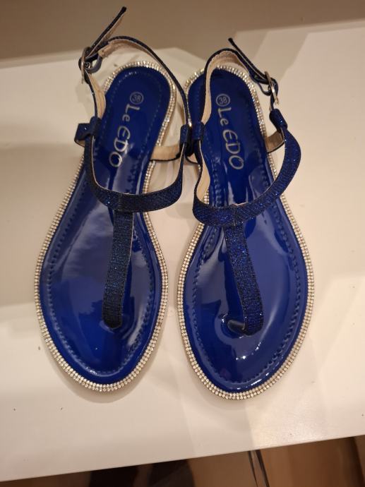 Prodajem nove sandale/japanke, tamno plave boje sa cirkonima. Veličina je 38, gazište je 24 cm. Marka Le EDO. Potplat je od gume tako da nizu skliske. Udobne su i lagano ih je nositi.