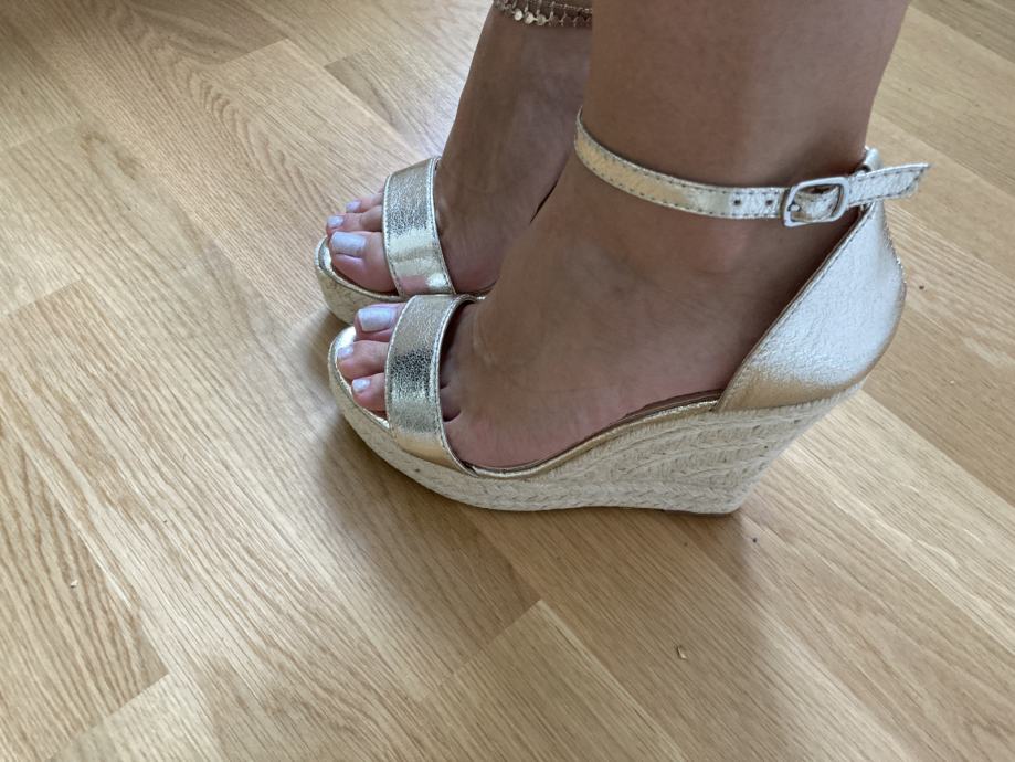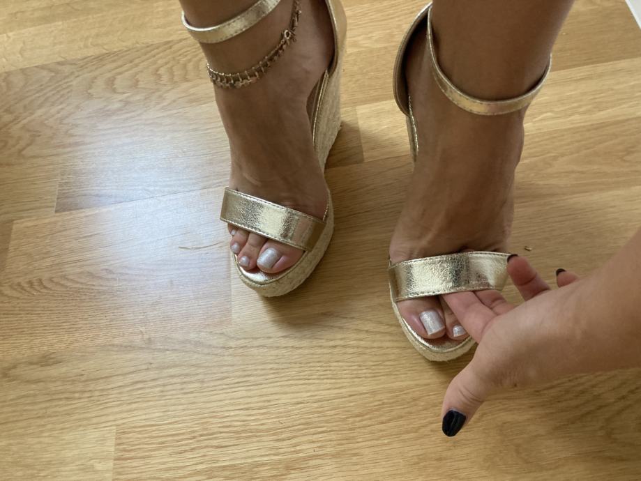 Potpuno nove zlatne ženske sandale s punom petom br. 37 - samo 7 Eur