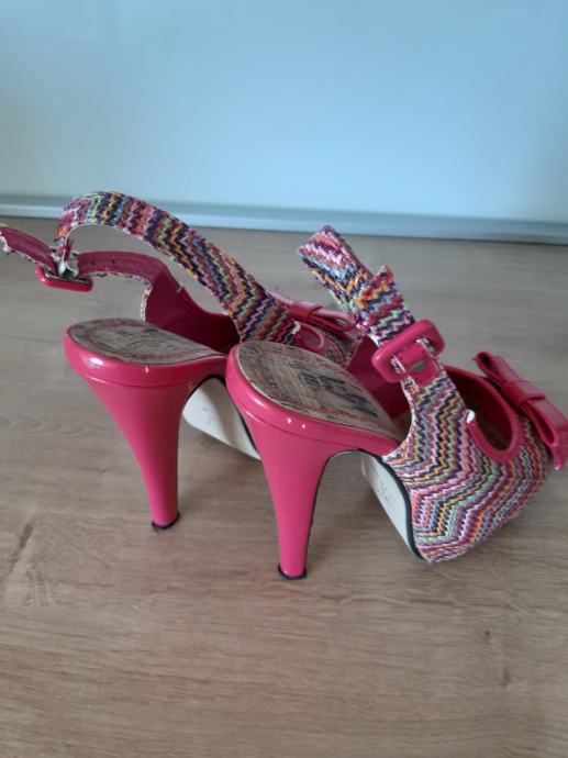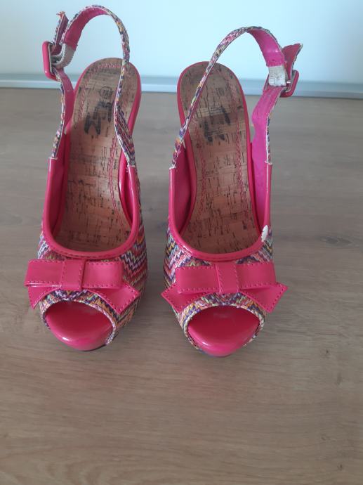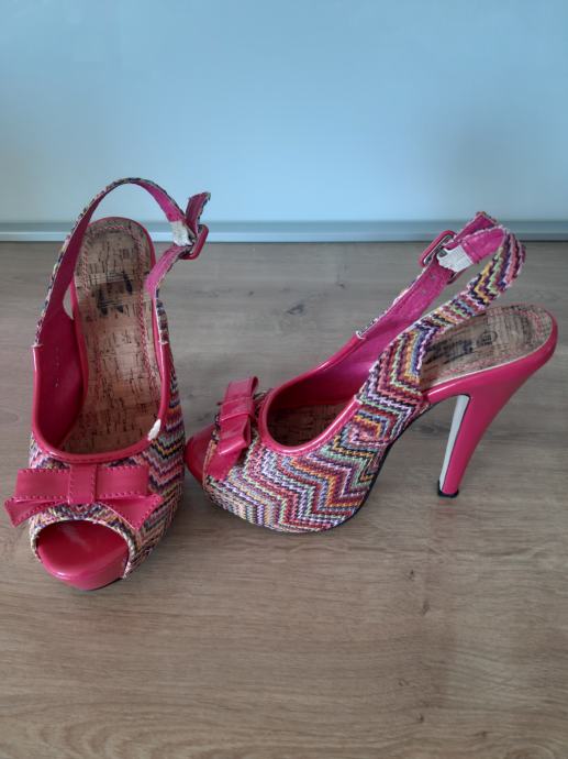 2. ROZO-ŠARENE: vel 38, peta 15 cm, platforma 5 cm, malo oštećene naprijed i na peti (vidi se bijelo, bojom ili markerom se riješi), 3 eur + pt