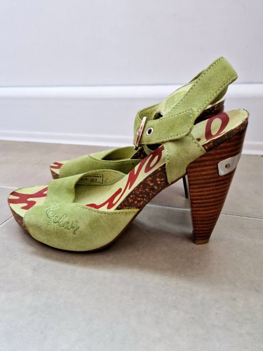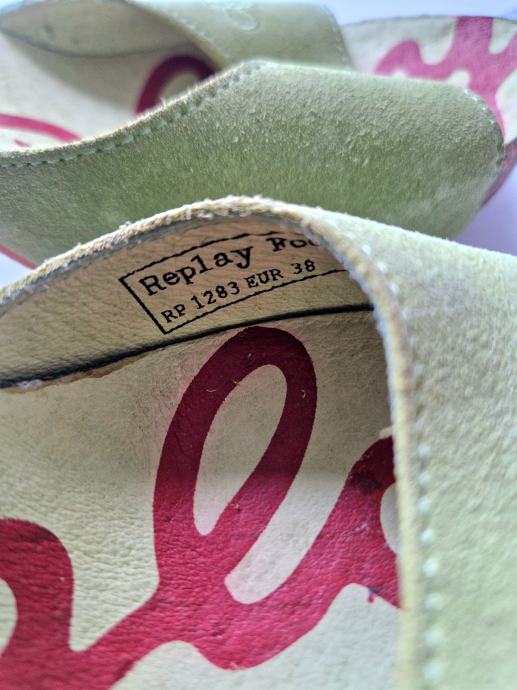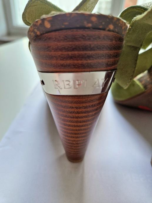 Prodajem Replay sandale na petu (peta 11cm, prsti na visini 3cm), koža, kiwi boja, veličina 38, vrlo malo nošene, u odličnom stanju.