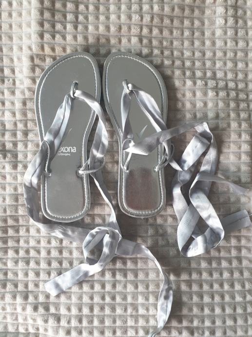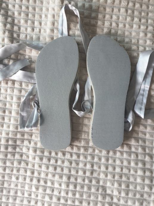 Nove sive japanke sa svilenim trakama za vezanje. Veličina 38, možda i 39. Nisu nošene ali mi se prilikom seljenja ogulio dio koji ide između prstiju, nije primjetno kod nošenja ali bolje da naglasim.