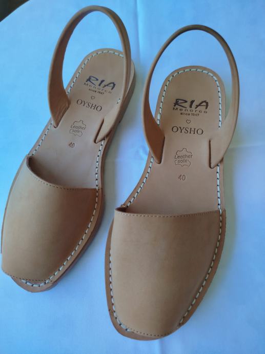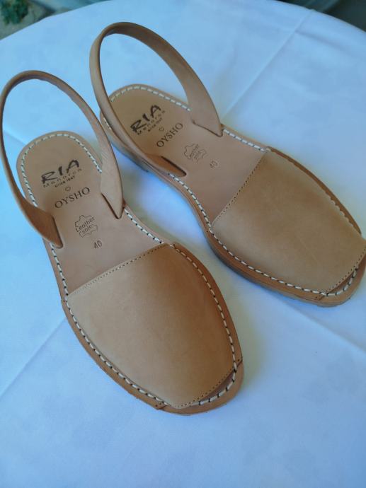 Svjetlosmeđe, kožne, niske sandale "RIA", otvoreni prsti, jednom korištene, veličina 40