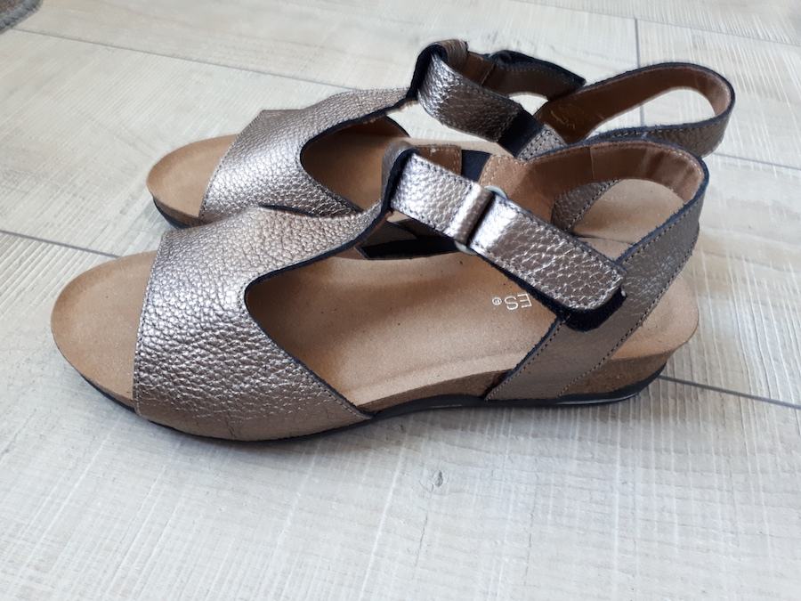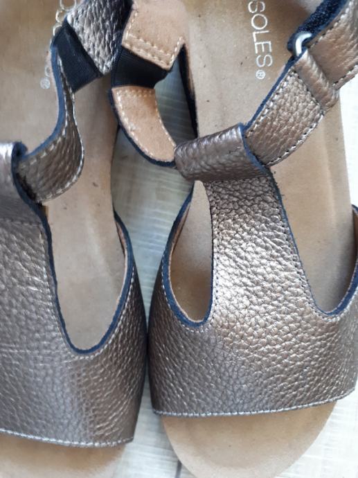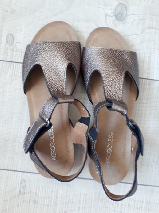 Aerosol sandale, bakreno-smeđe boje s laganim sjajem.