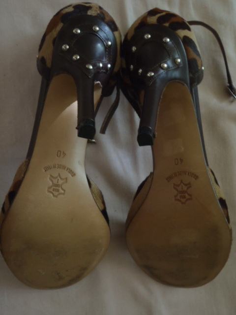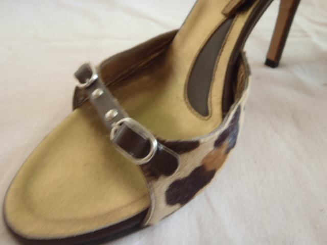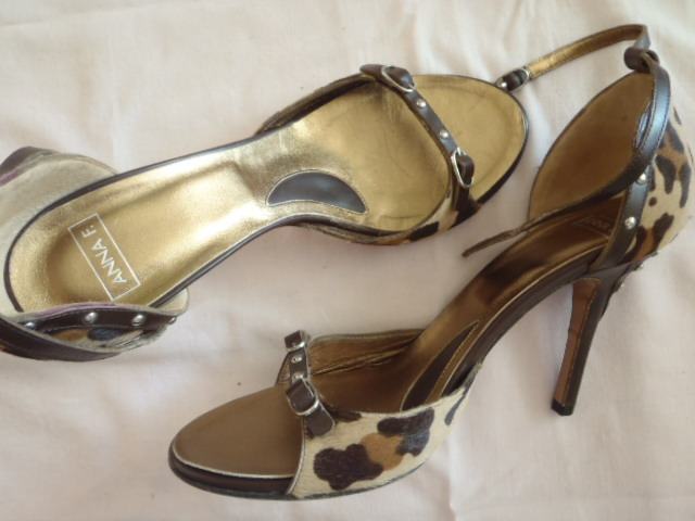 Anna F. dizajnerske sandale vel. 40 gaziste 26 cm. kao nove ,u kutiji , original! 100% koža, deklaracija ,kupljene u Padovi placene 189 eura - jako atraktivne -visina pete 10 cm.kravlja dlaka uzorak (pony hair) --obucene doslovno jedan jedini puta jedva na sat vremena -stanje izvanredno kao NOVE!