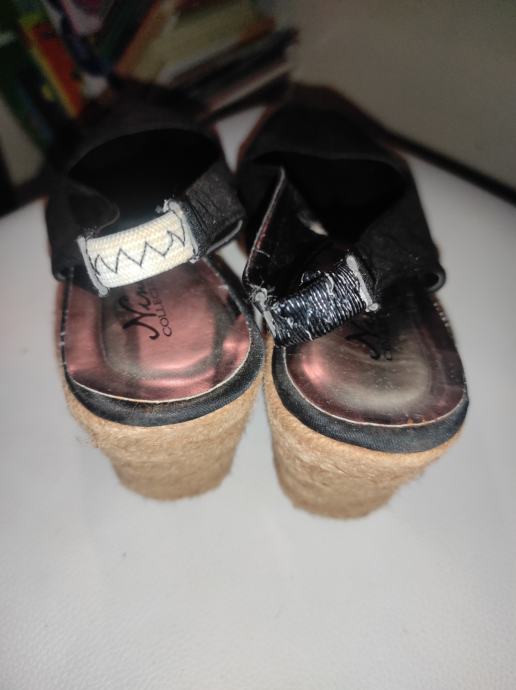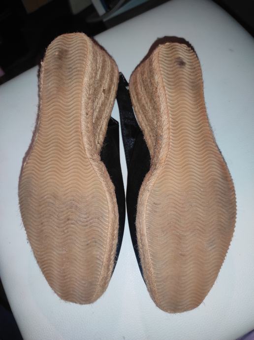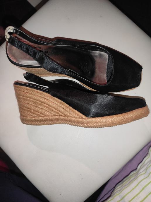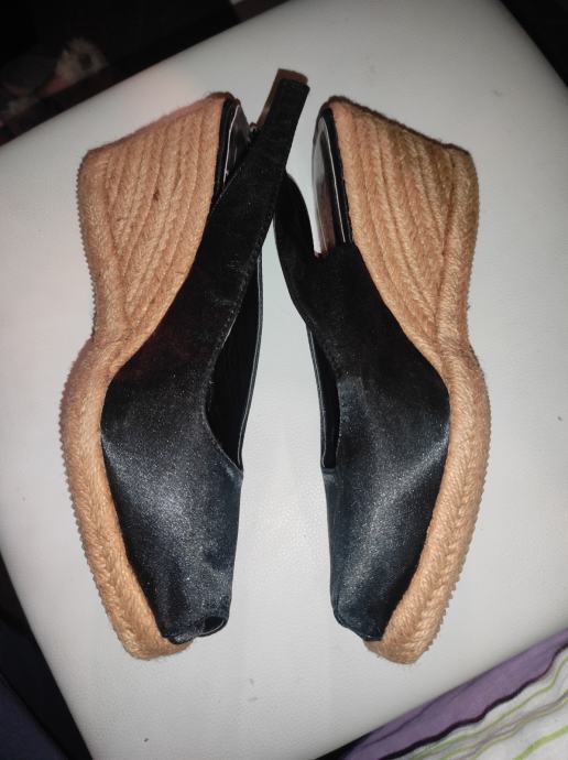 Prodajem ženske sandale s punom petom, broj 40, crne boje, izgledaju kao imitacija satena (sjajne), nošene jednom. Imaju jedno malo oštećenje prikazano na zadnjoj slici (s lastika je ispao komadić umjetne koze). Pogledajte i moje ostale oglase, nisam za zamjene jer se rješavam viška.