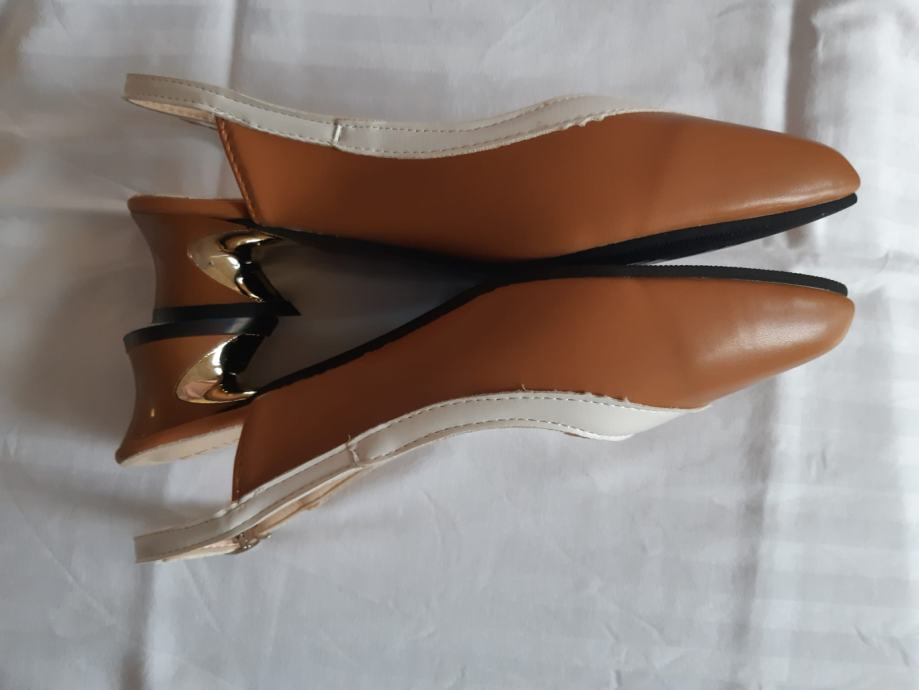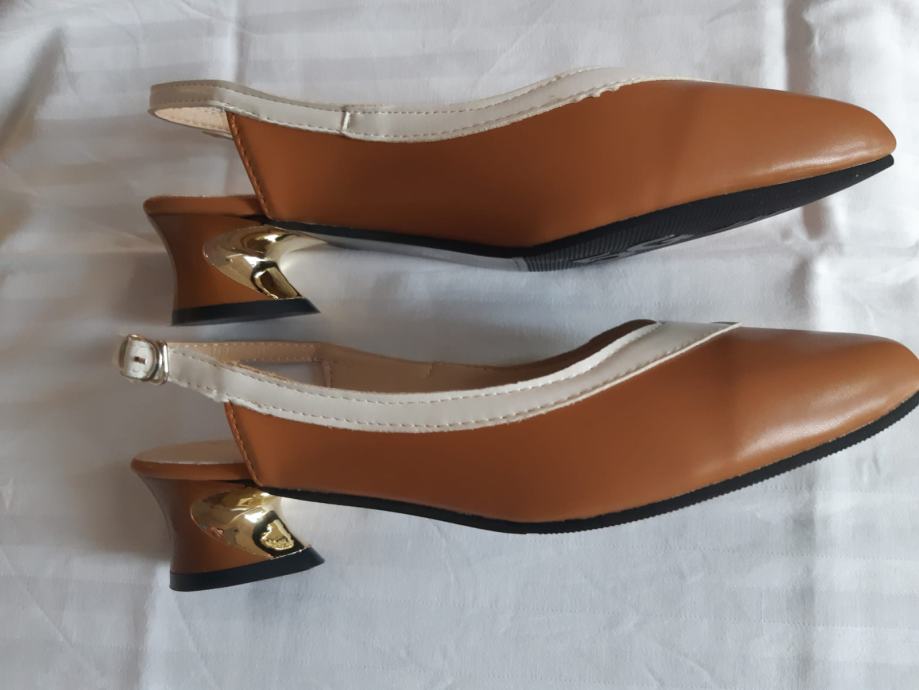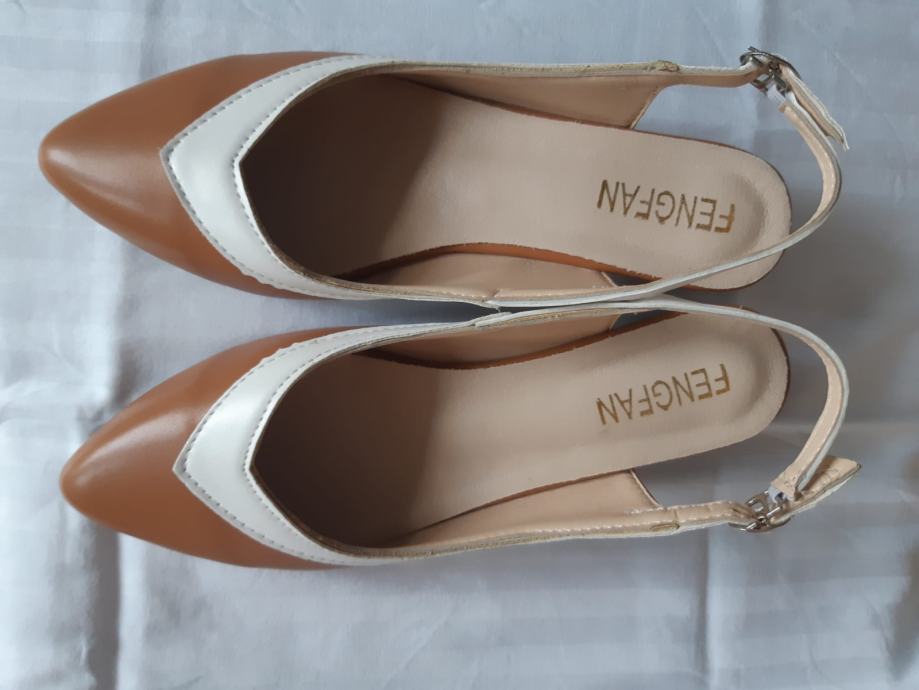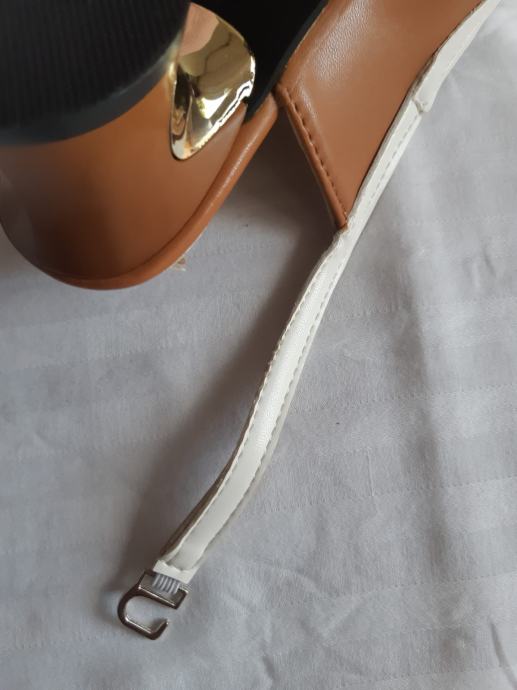 Sandale potpuno n o v e , peta cca 5 cm. Udobne. Lagane kao pero. Kombinacija čokoladno-karamel/ bijela boja. Ovo je broj 39 koji inače nosim i meni su male. Pogodne za ured i bilo koju drugu priliku s elegantnim izgledom.