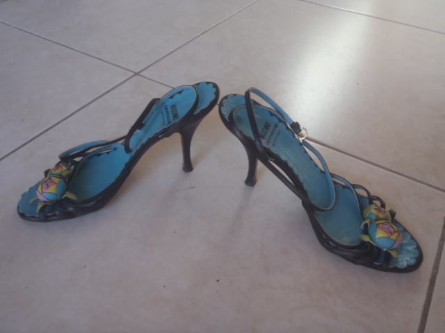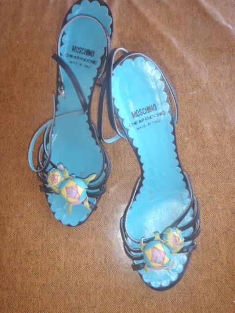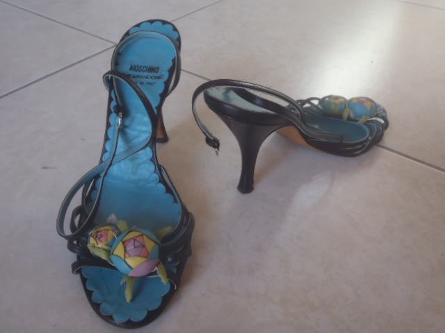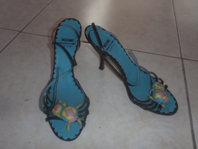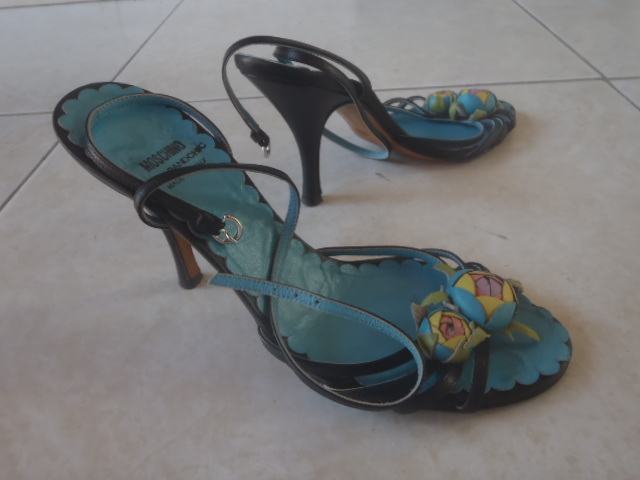 prekrasne chip& chic MOSCHINO štikle, sandale , crno-tirkizne u izvrsnom stanju , vel 37-duzina gazista/tabanice 24cm