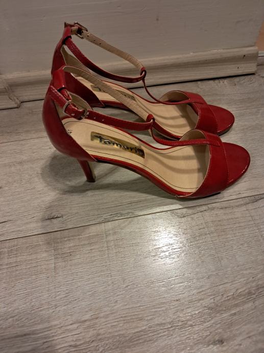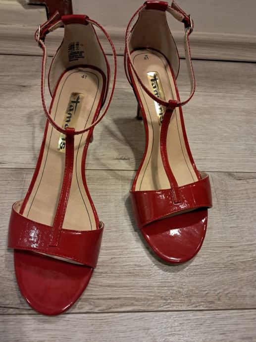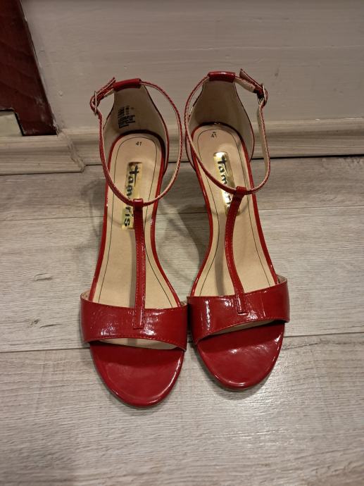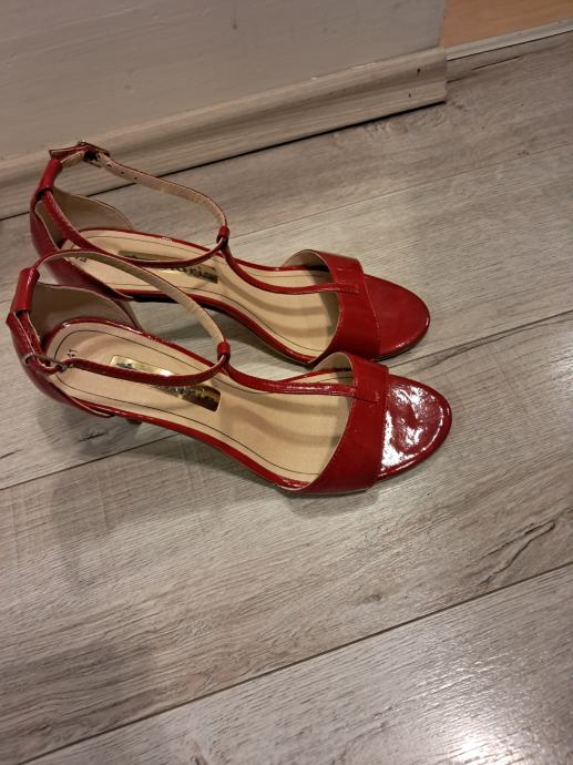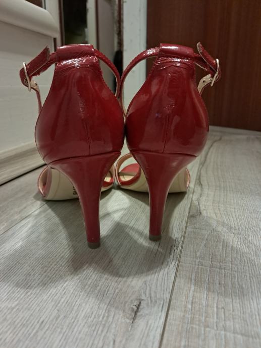 Crvene lakirane sandale na visoku petu od 9 cm.