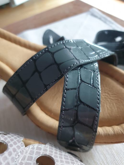 Veličina je 41, ali stvarno je 40. Fora su jer imaju dvoje ramenčiće od kože, koje se lako mijenjaju. Jedan par ramenčića je bež, a drugi sivi s uzorkom krokodila. Tako u stvari imate "dvoje" sandale tj. dva stila :)