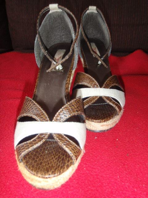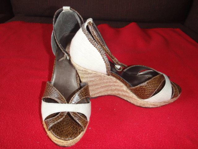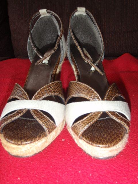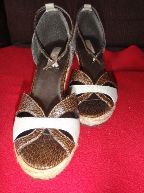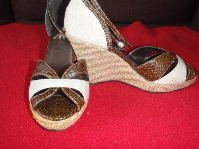 Ženske sandale (špagarice) na punu petu. Veličina 38, unutarnje gazište 24 cm. Boja tamnosmeđa i beige. Vezivanje oko gležnja. Dobro očuvane.Pogledajte moje ostale oglase.