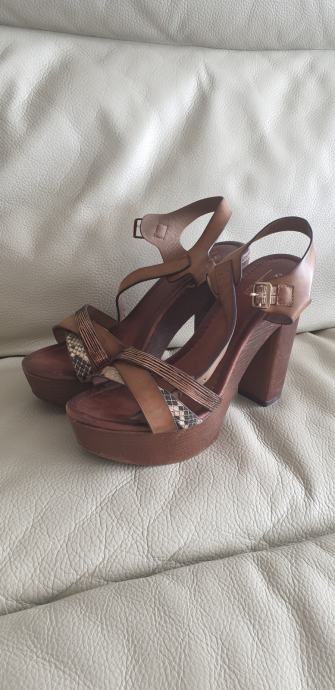 Visoke sandale smeđe boje, deblja peta osigurava udobnost pri hodanju. Broj 39