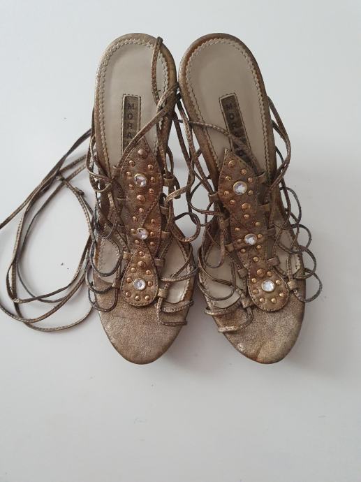 Predivne sandale na vezanje 36, boja starog zlata, sa platformom i elegantnom petom, idu na sve, ali ja nazalost vise ne smijem visoke pete i zato se teska srca rastajem sa svojim sandalama. Lagane,ugodne, svevremenske