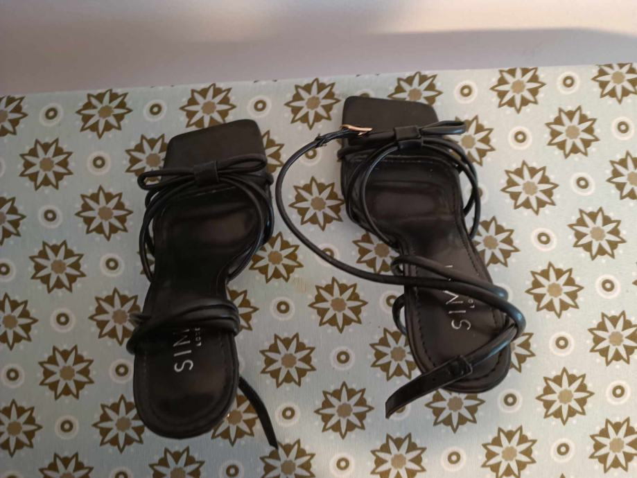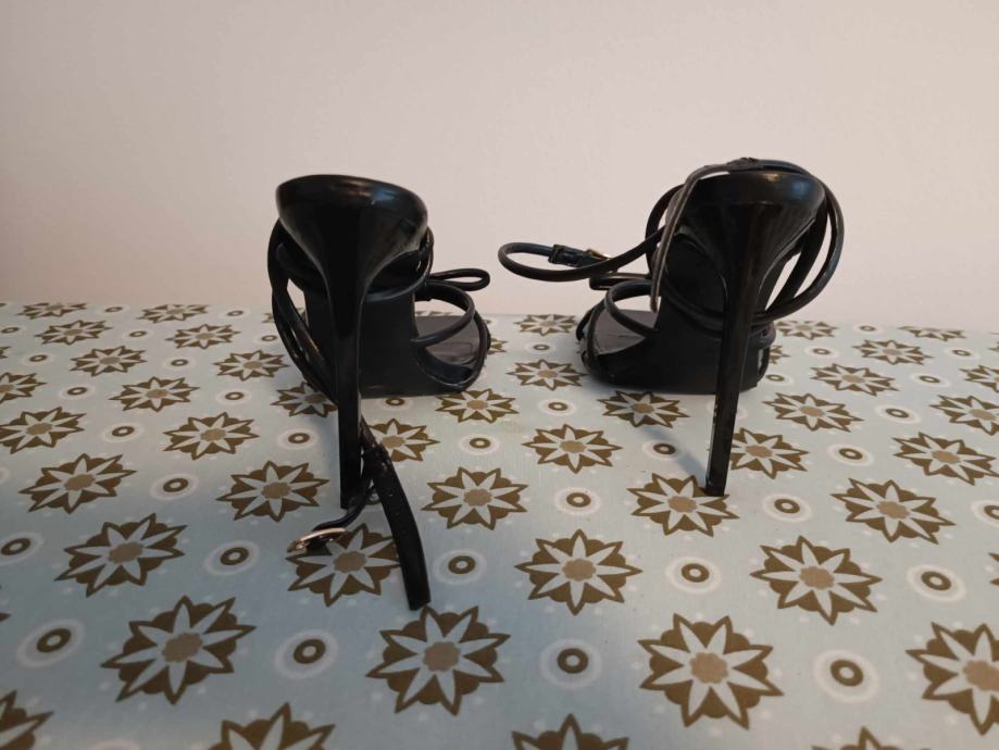 Crne sandale, peta 11,5 cm. Jednom nošene. Veličina 36.