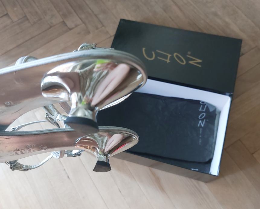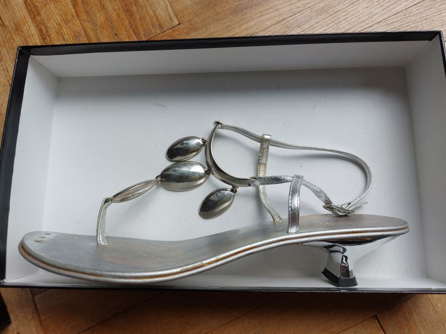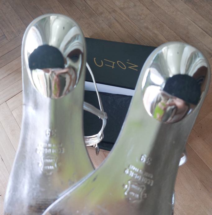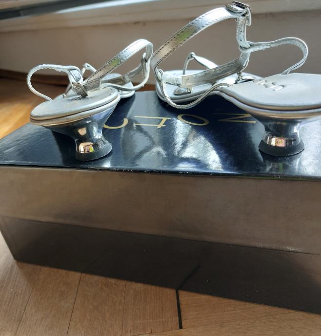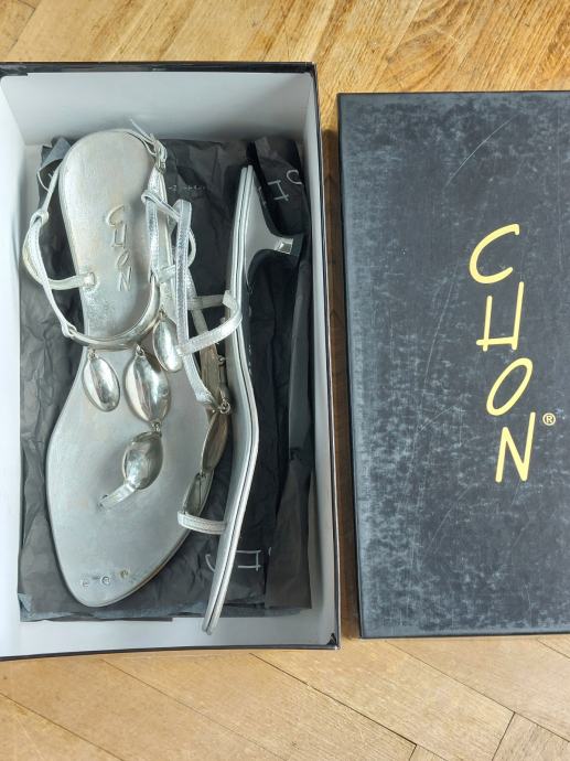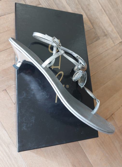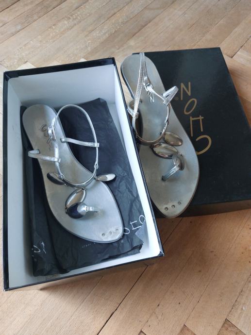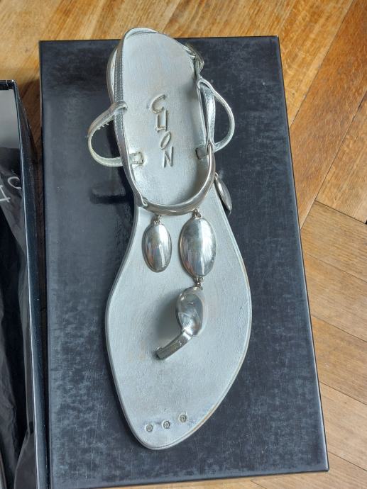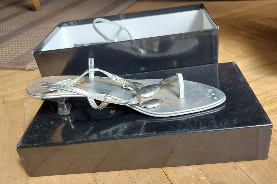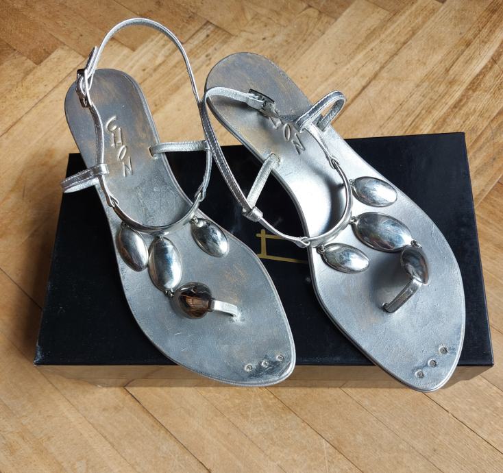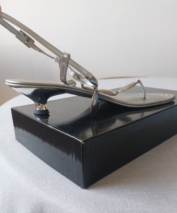 Lagane Chon sandale među prst izrađene samo od kože i metala sa malom kitten peticom, veličina 39, dužina tabanice 25.5 cm