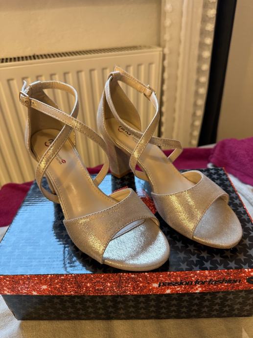 Ženske sandale na petu, zlatne boje