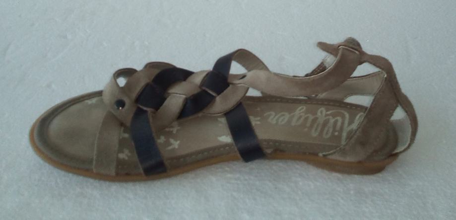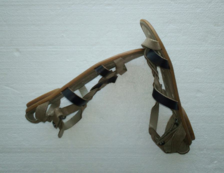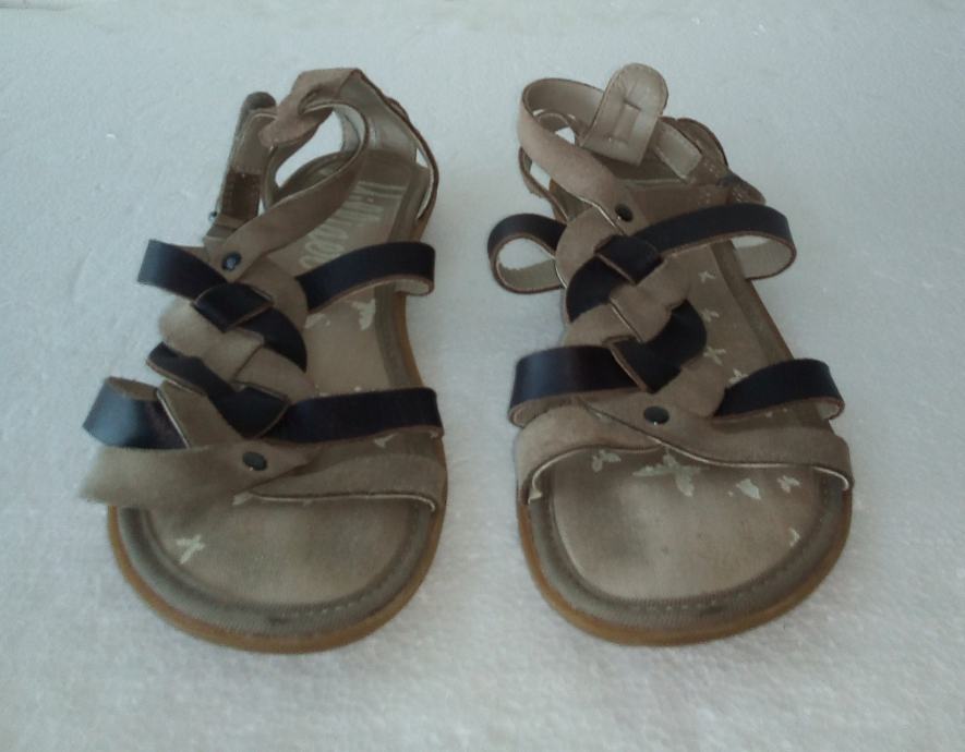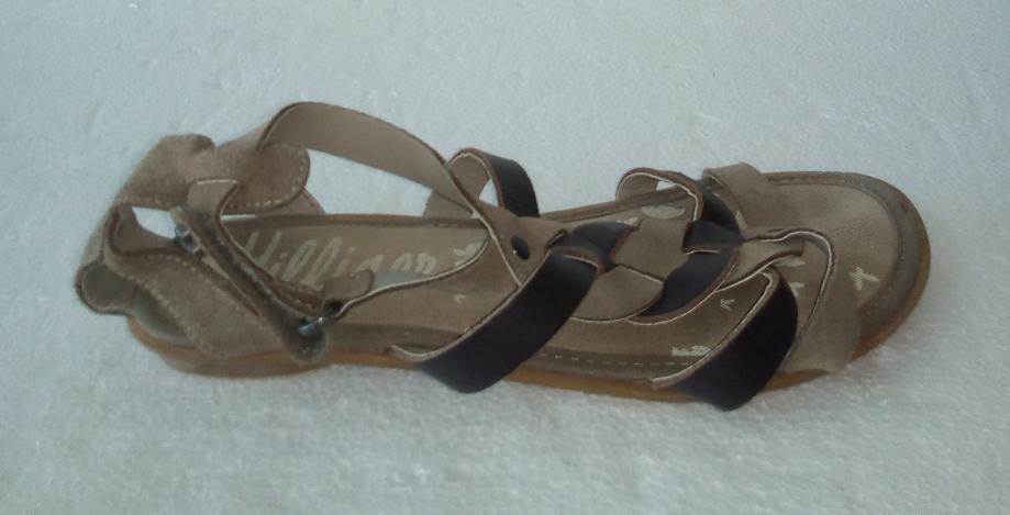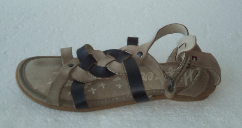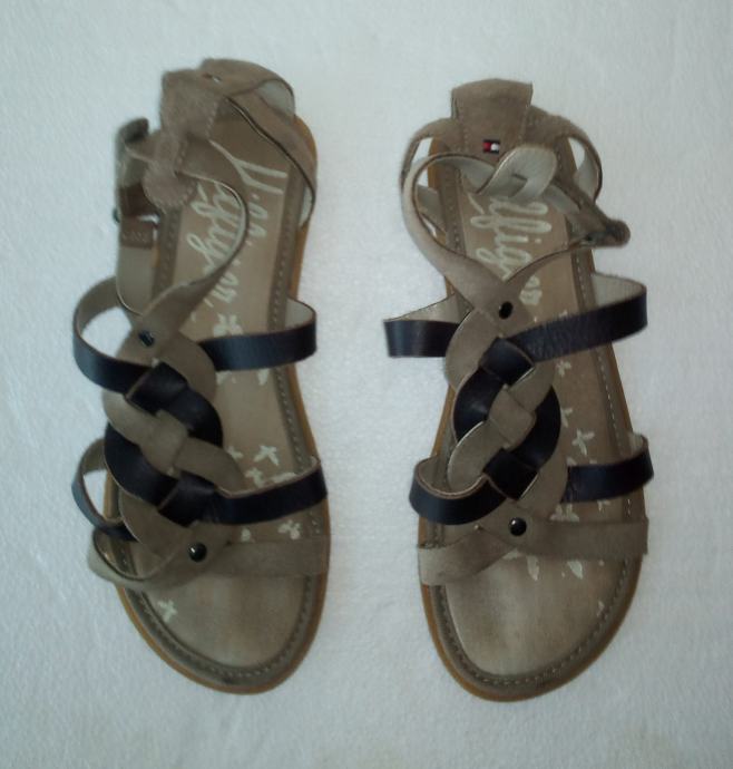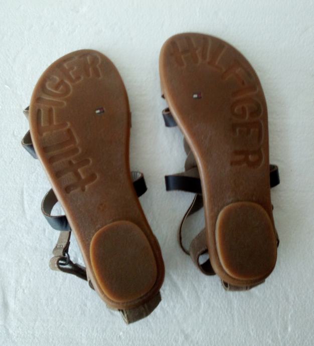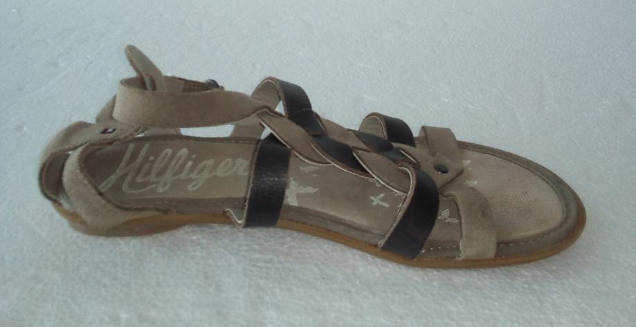 TOMMY HILFIGER sandale veličine 36. Remenčići gornjišta od kombinacije prirodne brušene kože i glatke kože, u drap i smeđim tonovima. Podstavljeno dodatnim zaštitnim slojem. Petica 1,5 cm. Kratko nošene i očuvane.