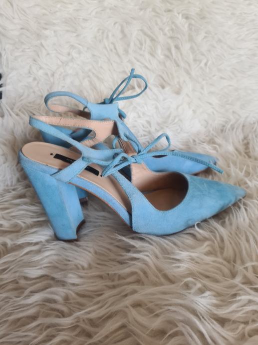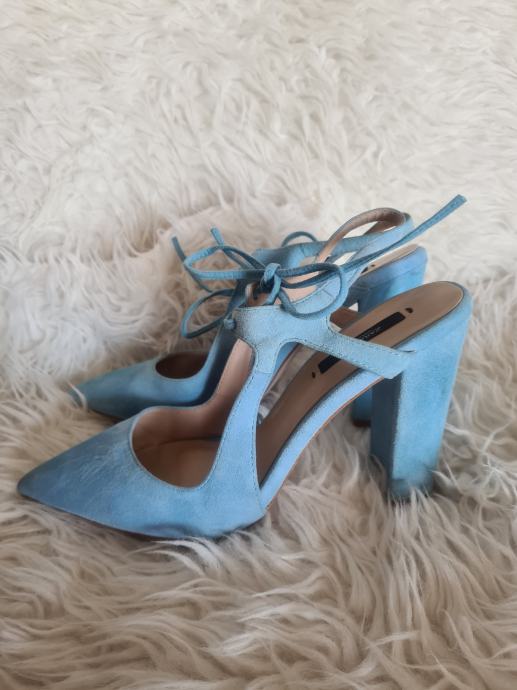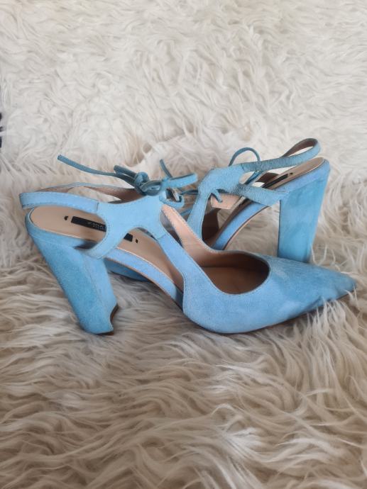 Prekrasne Zara sandale/cipele, brušena koža, visina pete 11cm, broj 40. Svjetlo plave boje.
