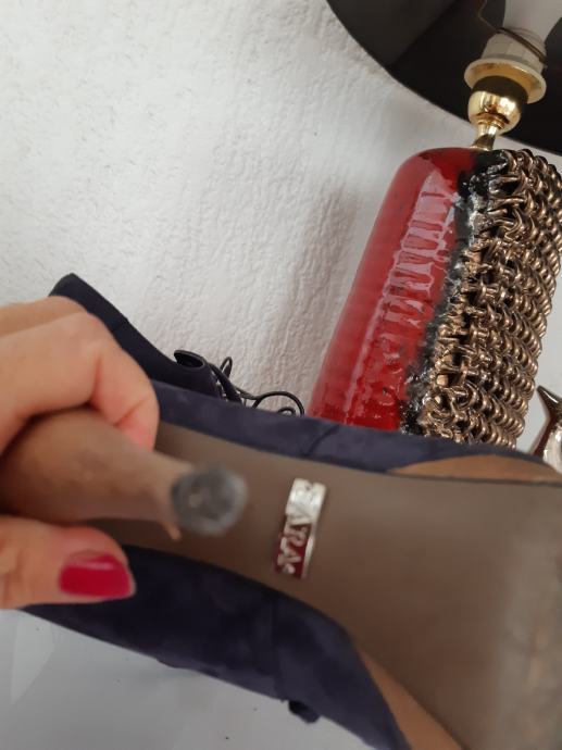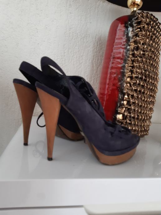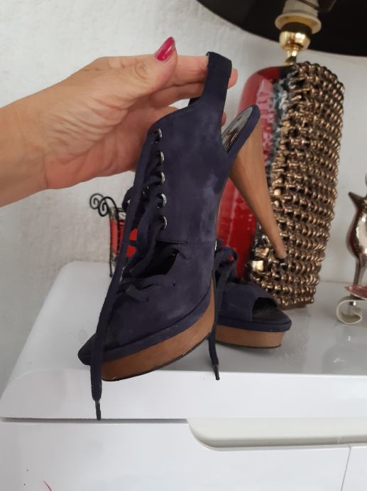 ZARA tamnoplave sandake od eko kože, na sniranje, peta: 11 cm, vel. 36.
