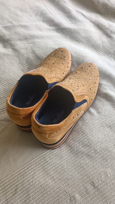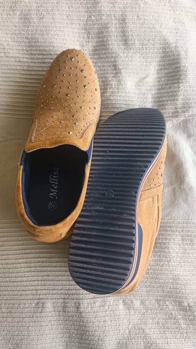 Prodajem žensku smeđu cipelu/sandalu, elegantnu, udobnu, sa šljokicama s prednje strane i povišenom petom..nošena nekoliko puta, ali bez ikakvih tragova nošenja
